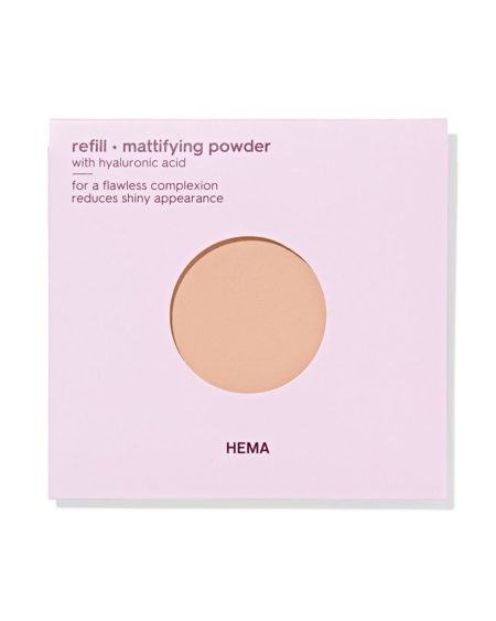 Dit is een navulling van matterende poeder. Met hyaluronzuur. Vegan, vrij van talk en microplastics. Je gebruikt deze poeder om je huid een egale tint te geven en glimmen te verminderen. Kies een navulbaar poederdoosje van HEMA en klik de navulling erin. Zo houd je jouw make-up makkelijk bij en blijft alles fris.