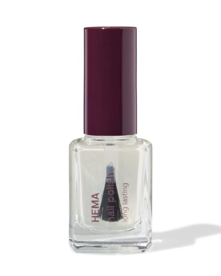 HEMA HEMA Long Lasting Nagellak 401 Going Dutch (transparant) nu voor slechts €3.79,-. Een lang houdende nagellak met keratine op plantbasis en rozenolie. Dit is een sterke nagellak die dankzij een krachtige formule langer blijft zitten, een intense kleur heeft en extra glanst. Gebruik voor het aanbrengen van de nagellak een basecoat. Voor een nog langer houdende nagellak kun je een topcoat gebruiken. Al onze nagellak is ’14-free’, wat betekent dat het vrij is van de volgende veertien schadelijke stoffen: Formaldehyde, Formaldehyde Resin, DBP (Dibutyl phthalate), Toluene, Kamfer, Ethyl Tosylamide, Xylene, TPHP (Triphenyl phosphate), Parabenen, Bismuth, MIT (Methylisothiazolinone), MEHQ (Mequinol), parfum, ingredienten van dierlijke oorsprong.De producteigenschappen: merk: HEMA. ingrediënten: Ethyl Acetate, Butyl Acetate, Nitrocellulose, Adipic Acid/Neopentyl Glycol/Trimellitic Anhydride Copolymer, Acetyl Tributyl Citrate, Isopropyl Alcohol, Mica, Silica, Synthetic Fluorphlogopite, Polyethylene Terephthalate, Calcium Aluminum Borosilicate, Aluminum Calcium Sodium Silicate, Stearalkonium Bentonite, Diacetone Alcohol, Styrene/Acrylates Copolymer, Dipropylene Glycol Dibenzoate, Acrylates Copolymer, Barium Sulfate, Sucrose Acetate Isobutyrate, Maltol, Pentaerythrityl Tetraisostearate, Tin Oxide, Triethoxycaprylylsilane, Aluminum Hydroxide, Polyurethane-11, Phosphoric Acid, Rosa Canina Fruit Oil, Aqua, Wheat Amino Acids, Soy Amino Acids, Arginine HCL, Threonine, Serine, Benzyl Alcohol, Potassium Sorbate, Sodium Benzoate [+/-] CI 12085, CI 15850, CI 15880, CI 19140, CI 42090, CI 60725, CI 77000, CI 77007, CI 77491, CI 77499, CI 77510, CI 77820, CI 77891. houdbaarheid na opening: 12M. artikel nummer: 11240711. https://www.hema.nl/dw/image/v2/BBRK_PRD/on/demandware.static/-/Sites-HEMA-master-catalog/default/dw481716c6/product/11240711_01_004.jpg?sw=1100&sh=1500&sm=fit&sfrm=png&bgcolor=FFFFFF.