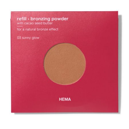 Dit is een navulling van bronzingpoeder. Met cacaopoeder. Vegan, vrij van talk en microplastics. De poeder geeft je gezicht en hals een natuurlijke zongebruinde look. Kies een navulbaar poederdoosje van HEMA en klik de navulling erin.