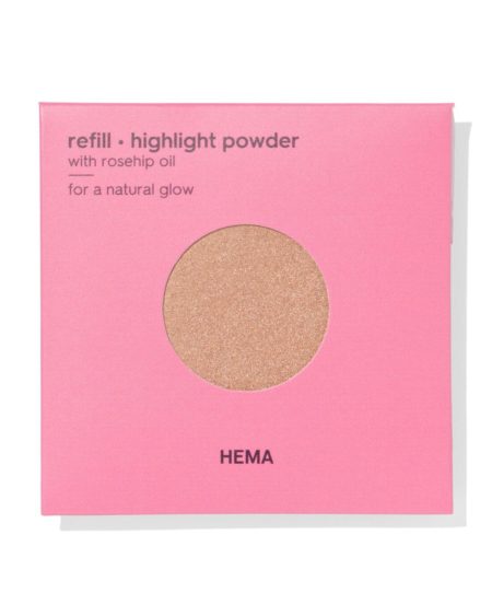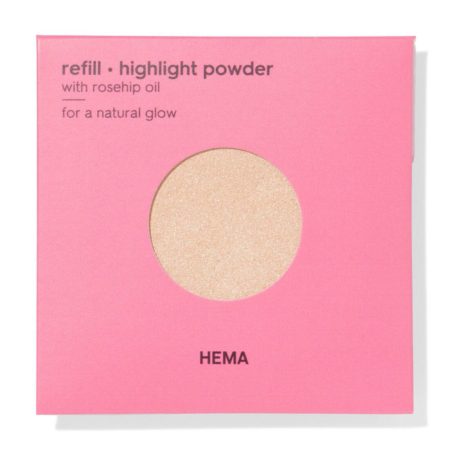 De producteigenschappen: merk: HEMA. kleurnummer: 2. ingrediënten: navulling highlighterpoeder met rozenbottelolie. Voor een natuurlijke gloed.