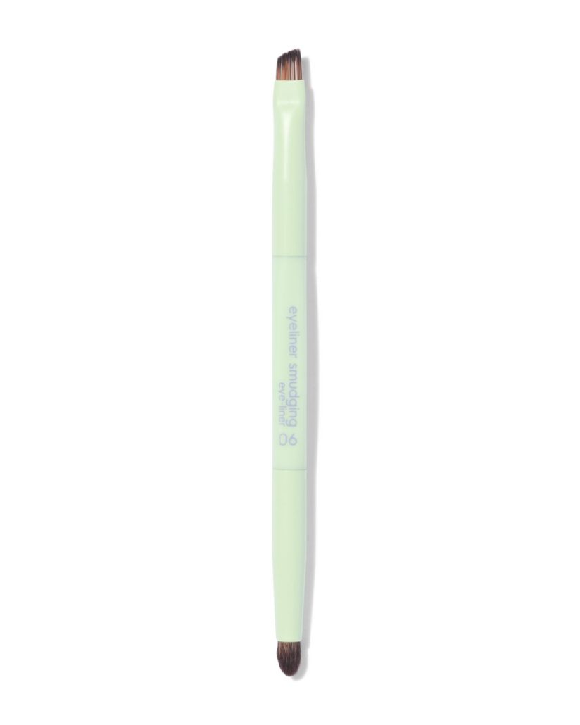 Een eyeliner en smudging penseel. Dit handige kwastje met twee zijdes is ideaal voor het aanbrengen en vervagen van eyeliner. De eyelinerborstel heeft een platte, afgeschuinde punt die wordt gebruikt om nauwkeurige eyelinerlijnen te tekenen. Het smudiging kwastje is geschikt voor het vervagen en mengen van oogschaduw en eyeliner.