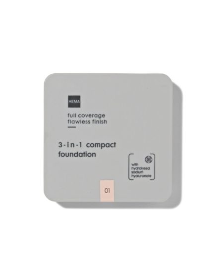 Dit is een primer, foundation en poeder in 1. De foundation met crème textuur geeft een hoge dekking en een egale finish. De formule bevat gehydrolyseerd sodium hyaluronate, dat goed is voor de huid. De verpakking is gemaakt van gerecycled materiaal en heeft aan de binnenkant een spiegeltje en een spons. De producteigenschappen: merk: HEMA. kleurnummer: 1. ingrediënten: CI 77891, DICAPRYLYL CARBONATE, PHENYL TRIMETHICONE, HYDROGENATED POLYDECENE, TRIBEHENIN, SILICA, SYNTHETIC WAX, CI 77492, DIMETHICONE/VINYL DIMETHICONE CROSSPOLYMER, ETHYLENE/PROPYLENE COPOLYMER, CI 77491, PENTAERYTHRITYL TETRA-DI-T-BUTYL HYDROXYHYDROCINNAMATE, CI 77499, DICALCIUM PHOSPHATE, LIMNANTHES ALBA SEED OIL, DIMETHICONE, GLYCERYL BEHENATE, HYDROLYZED SODIUM HYALURONATE, DISTEARDIMONIUM HECTORITE, POLYHYDROXYSTEARIC ACID, TOCOPHEROL. geparfumeerd: nee. vorm: compact. houdbaarheid na opening: 12M. artikel nummer: 11290341 Unisex.
