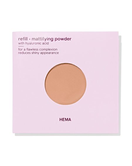 Dit is een navulling van matterende poeder. Met hyaluronzuur. Vegan, vrij van talk en microplastics. Je gebruikt deze poeder om je huid een egale tint te geven en glimmen te verminderen. Kies een navulbaar poederdoosje van HEMA en klik de navulling erin. Zo houd je jouw make-up makkelijk bij en blijft alles fris.