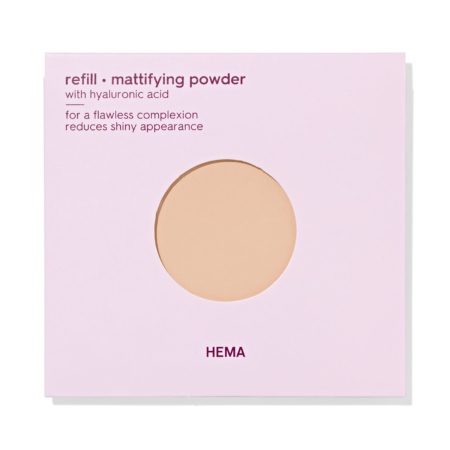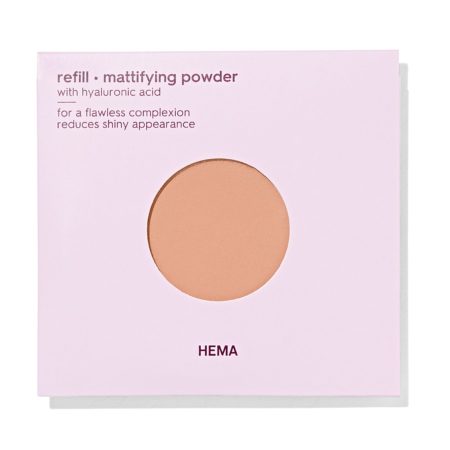 Dit is een navulling van matterende poeder. Met hyaluronzuur. Vegan, vrij van talk en microplastics. Je gebruikt deze poeder om je huid een egale tint te geven en glimmen te verminderen. Kies een navulbaar poederdoosje van HEMA en klik de navulling erin. Zo houd je jouw make-up makkelijk bij en blijft alles fris.