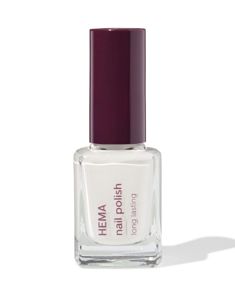 HEMA Long lasting nagellak 402 milkmaid (wit) nu voor slechts €3.79,-. HEMA Long lasting nagellak 402 milkmaid (wit) nu voor slechts €,-. Een lang houdende en sterke nagellak in de kleur 402 milkmaid met keratine op plantbasis en rozenolie. Door de verbeterde en krachtige formule blijft de nagellak lang zitten, heeft een intense kleur en extra glans. Gebruik voor het aanbrengen eerst een basecoat om je nagels te beschermen tegen verkleuring als ondergrond voor de nagellak. Als laatste gebruik je een topcoat die de kleurlak beschermt tegen verkleuringen en afbladderen. Al onze nagellak is '14-free', wat betekent dat het vrij is van de volgende veertien schadelijke stoffen: Formaldehyde, Formaldehyde Resin, DBP (Dibutyl phthalate), Toluene, Kamfer, Ethyl Tosylamide, Xylene, TPHP (Triphenyl phosphate), Parabenen, Bismuth, MIT (Methylisothiazolinone), MEHQ (Mequinol), parfum, ingredienten van dierlijke oorsprong.De producteigenschappen: merk: HEMA. ingrediënten: Ethyl Acetate, Butyl Acetate, Nitrocellulose, Adipic Acid/Neopentyl Glycol/Trimellitic Anhydride Copolymer, Acetyl Tributyl Citrate, Isopropyl Alcohol, Mica, Silica, Synthetic Fluorphlogopite, Polyethylene Terephthalate, Calcium Aluminum Borosilicate, Aluminum Calcium Sodium Silicate, Stearalkonium Bentonite, Diacetone Alcohol, Styrene/Acrylates Copolymer, Dipropylene Glycol Dibenzoate, Acrylates Copolymer, Barium Sulfate, Sucrose Acetate Isobutyrate, Maltol, Pentaerythrityl Tetraisostearate, Tin Oxide, Triethoxycaprylylsilane, Aluminum Hydroxide, Polyurethane-11, Phosphoric Acid, Rosa Canina Fruit Oil, Aqua, Wheat Amino Acids, Soy Amino Acids, Arginine HCL, Threonine, Serine, Benzyl Alcohol, Potassium Sorbate, Sodium Benzoate [+/-] CI 12085, CI 15850, CI 15880, CI 19140, CI 42090, CI 60725, CI 77000, CI 77007, CI 77491, CI 77499, CI 77510, CI 77820, CI 77891. houdbaarheid na opening: 24M. artikel nummer: 11240712…