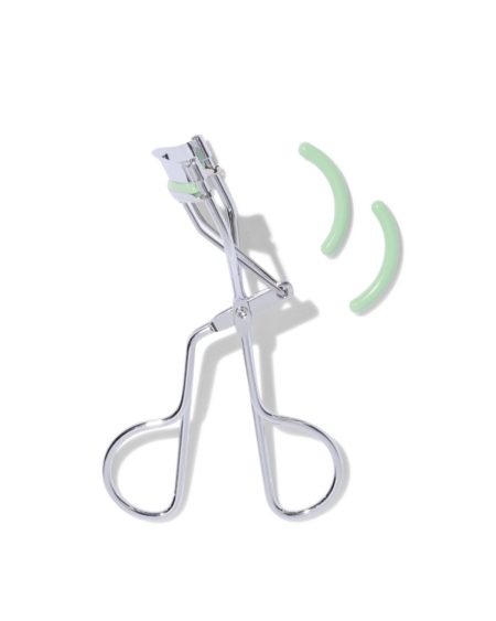Een metalen wimperkrultang. Deze wimperkruller versterkt de natuurlijke krul van alle wimperhaartjes vóór mascara erover gaat. Tip: gebruik in combinatie met volumemascara.
